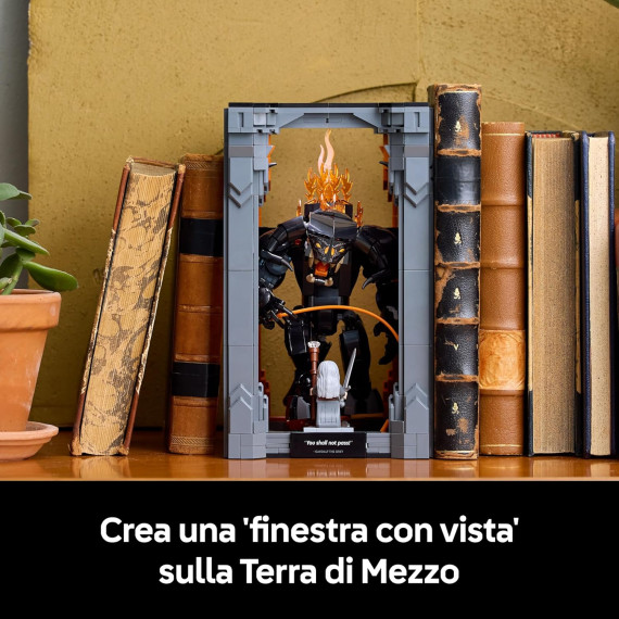 - Kit Book Nook cinematografico: crea una finestra sulla Terra di Mezzo con il set Il Signore degli Anelli: Book Nook del Balrog™ LEGO® Icons per adulti