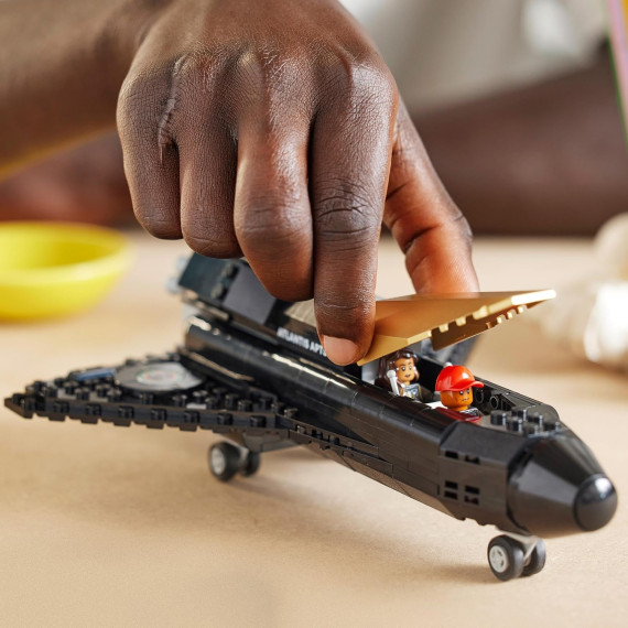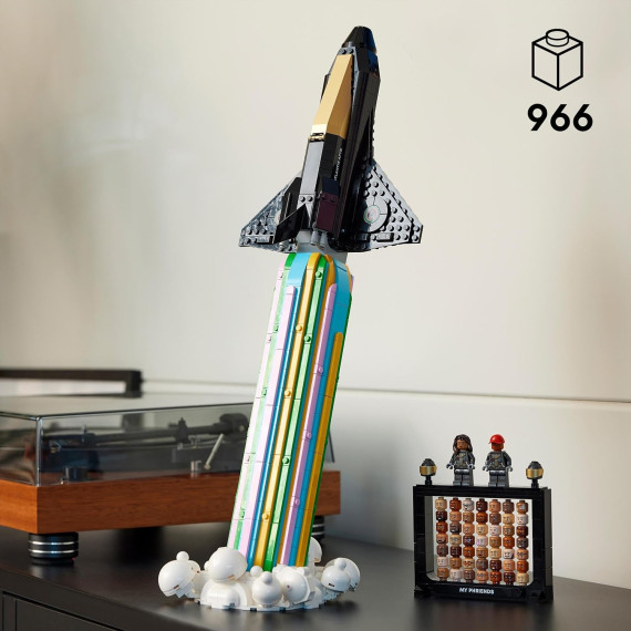 Il modellino dello Space Shuttle è dotato di cabina di pilotaggio apribile e di carrello di atterraggio agganciabile, che può essere montato quando il veicolo è staccato dalla scia colorata, che funge da espositore. Ognuna delle 2 minifigure è dotata di tuta spaziale color titanio con dettagli stampati, più un casco spaziale con visiera color oro apribile.