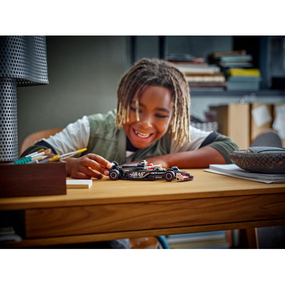 - 1 minifigure: il set include una minifigure di pilota con tuta Haas e casco con ala da posizionare nell’abitacolo per ricreare emozionanti azioni di gara