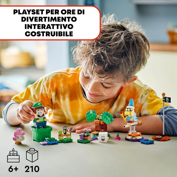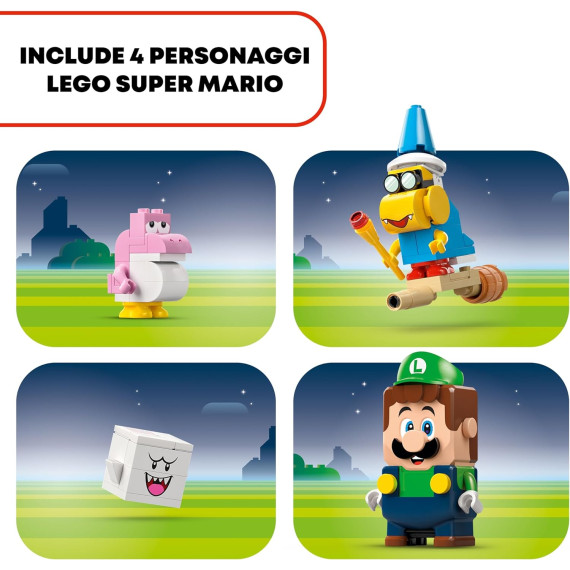 - 4 personaggi LEGO® Super Mario™: questo set di giocoNintendo® collezionabile include un personaggio giocattolo interattivo di LEGO® Luigi™, più Kamek, un Baby Yoshi rosa e un Boo
