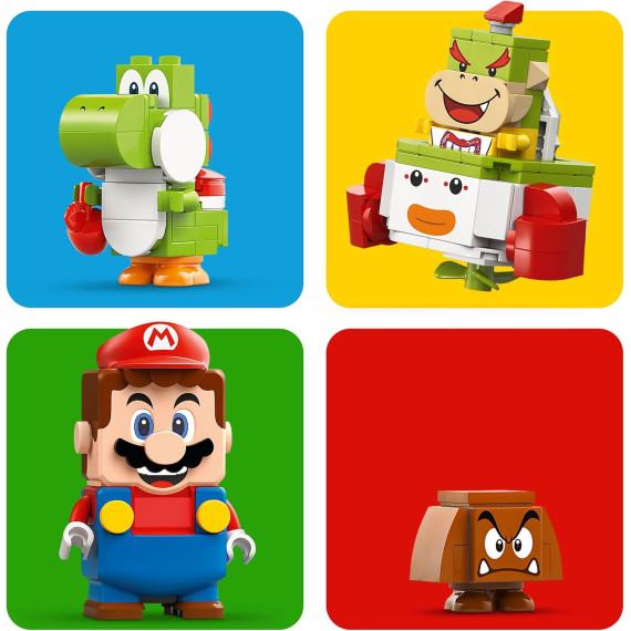 - 4 personaggi giocattolo LEGO® Super Mario™: un personaggio LEGO® Mario™ interattivo, più Bowser Jr., Yoshi e un Goomba