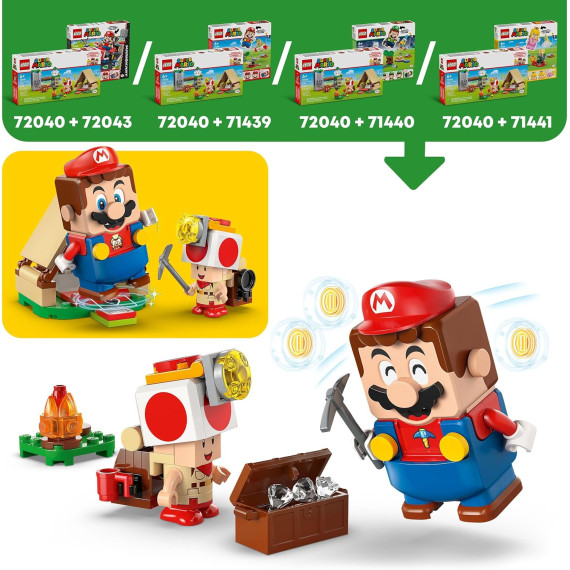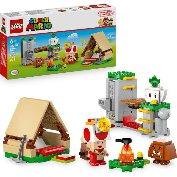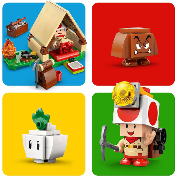Rilassati in campeggio con Capitan Toad, cerca il tesoro nascosto e sconfiggi un Goomba con questo playset LEGO® Super Mario™.