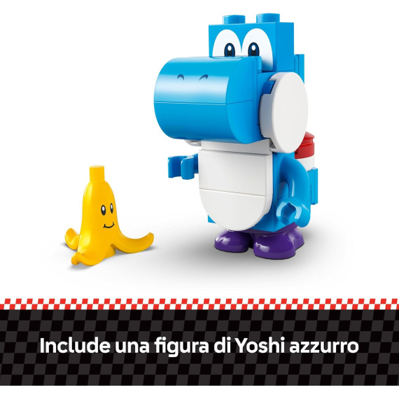 - Include il personaggio giocattolo di Yoshi azzurro: per la prima volta in un set LEGO® Super Mario™, trova il personaggio di Yoshi azzurro, più un elemento banana con viso decorato