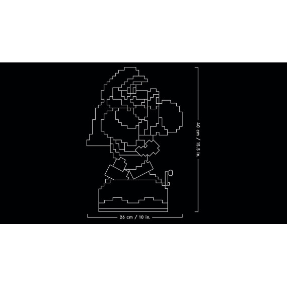 - Dimensioni: questo modello da esposizione di 1.215 pezzi misura 40 cm di altezza, 26 cm di larghezza e 11 cm di profondità e costituisce una divertente decorazione per la tua casa o l’abitazione o l’ufficio di ogni fan di Super Mario™.