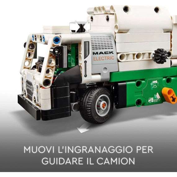 - Camion giocattolo per bambini dagli 8 anni in su: il Camion della spazzatura Mack® LR Electric LEGO® Technic per i bambini e le bambine è dotato di caricatore laterale per afferrare, sollevare e ribaltare i bidoni della spazzatura
