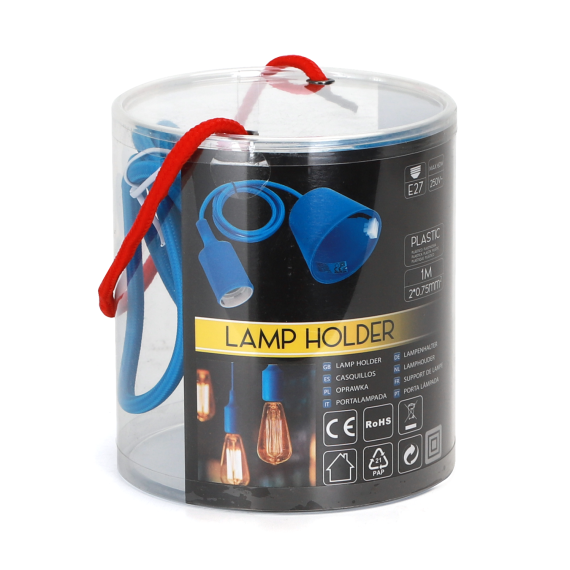Portalampada in plastica attacco E27 azzurro con cavo 1mt - MAX 60W - Voltaggio: 250V porta lampada da interno