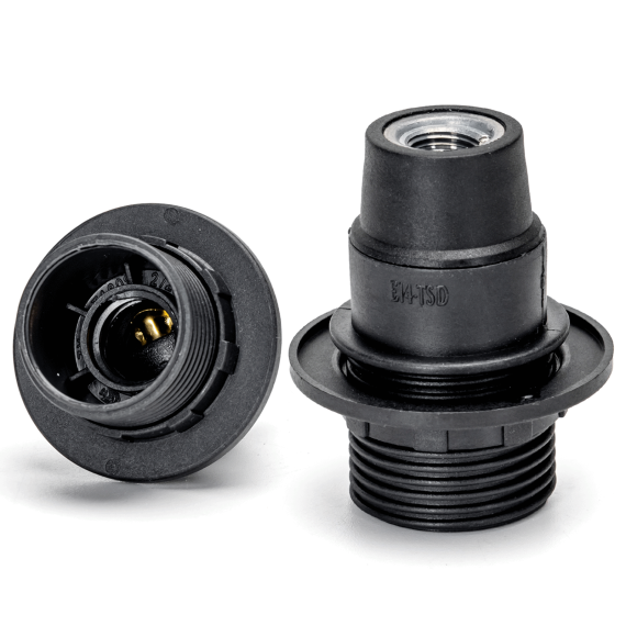 Portalampada in plastica autobloccante mezzo filettato attacco E14 colore nero - 2A 250V T210 - dimensione 28xH53.5mm porta lampada