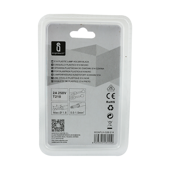 Portalampada in plastica mezzo filettato attacco E14 colore nero - 2A 250V T210 - dimensione 43.2x56.8mm porta lampada