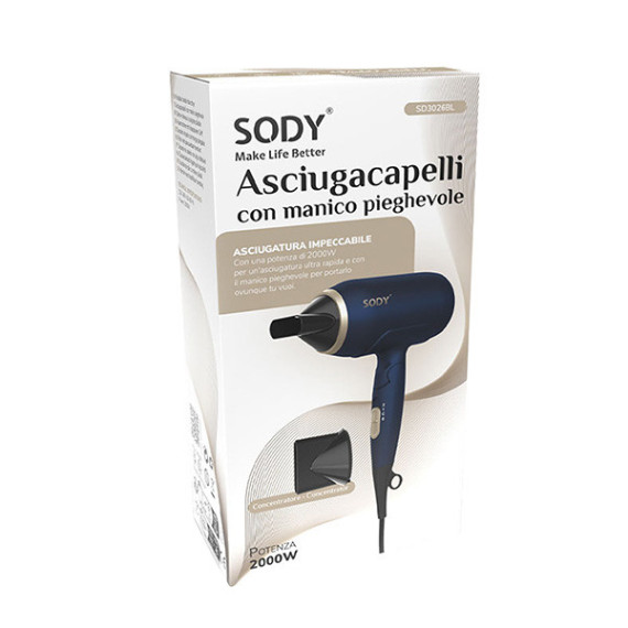 Asciugacapelli - manico pieghevole - 2000 W - blu