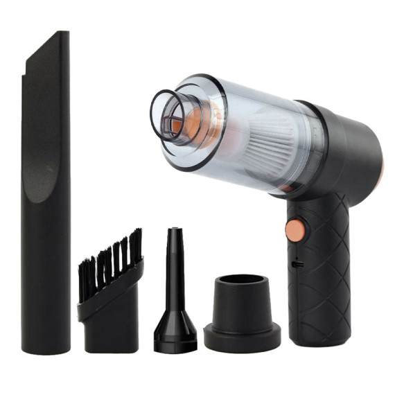 Aspirapolvere ciclonico e soffiatore 6 in 1 wireless 45 W super compatto, con 4 accessori e spazzole per la pulizia di auto e della casa. Alimentazione a batteria con caricatore TYPE-C cavo in dotazione autonomia 10 minuti con uso continuativo. Ideale per creare il vuoto nelle confezioni per indumenti, soffiare potentemente la polvere da parti elettroniche e tastiere e molto altro ancora.