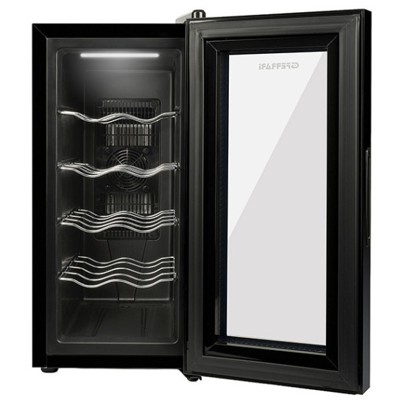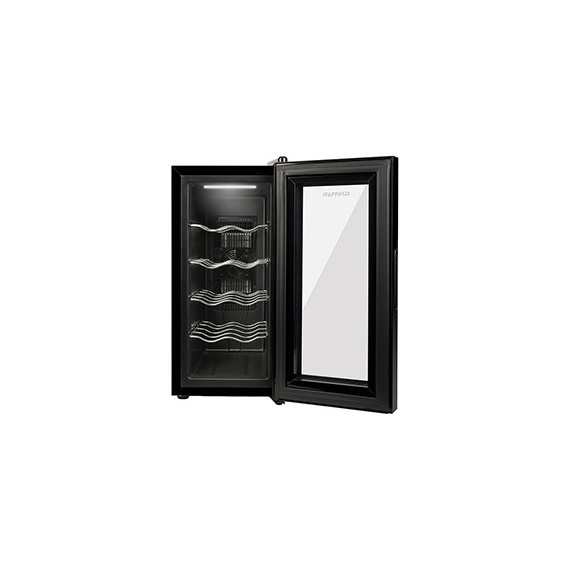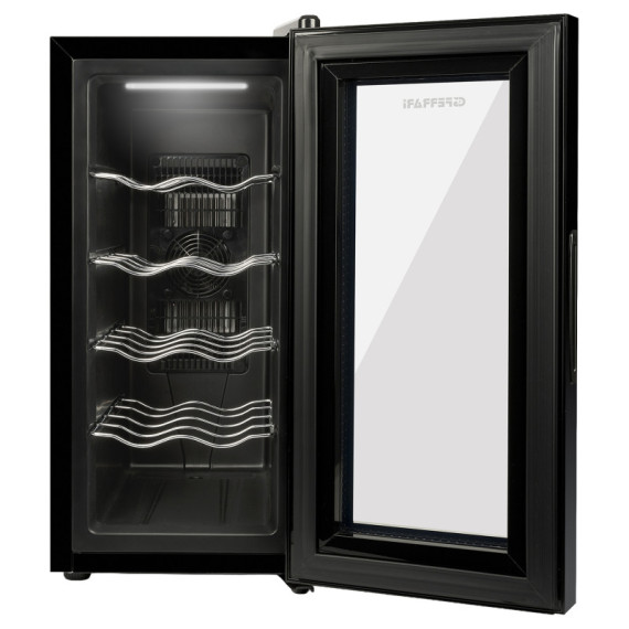 Riservetta, frigorifero super silenzioso con funzionamento a semiconduttore, è la soluzione ideale per conservare fino a 10 bottiglie sempre a temperatura perfetta. Dotato di doppia cella di Peltier e di pareti ben isolate, è in grado di raggiungere basse temperature anche quando opera in ambienti molto caldi. Equipaggiata con controllo elettronico della temperatura, display LED con comandi soft touch e luce interna, Riservetta è un prodotto particolarmente ecologico, dato che consuma solo 75 kWh all’anno e che il suo funzionamento non prevede l’utilizzo di gas refrigerante. Capacità 10 bottiglie (28L) Display LED con comandi touch Sistema di raffreddamento senza compressore e gas refrigerante 2 celle di Peltier e 2 ventole di raffreddamento Basso consumo energetico: 65W/75 KWh anno Classe energetica E Funzionamento super-silenzioso: 35dBA Termostato regolabile da 8°C a 18°C Luce interna 4 ripiani in acciaio cromato Potenza: 65W Alimentazione: AC 100-240V ~ 50-60Hz Dimensioni (L x H x P): 26 x 56.7 x 51.5 cm Peso: 12.7 Kg