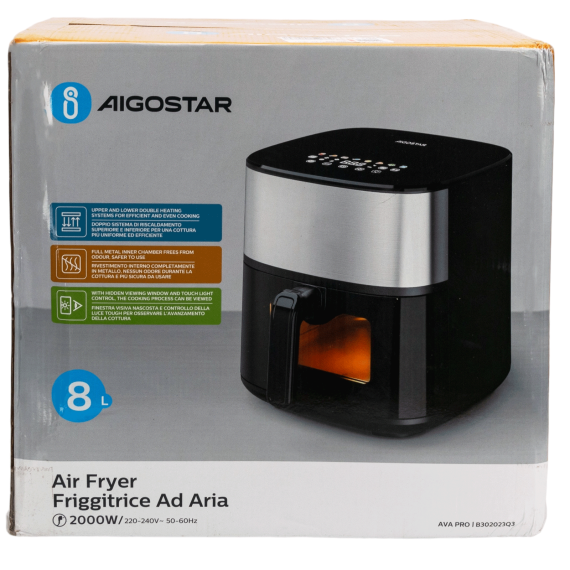 Friggitrice ad aria da 8 litri 2000W, touch screen, Doppio sistema di riscaldamento superiore e inferiore, con cestello Aigostar