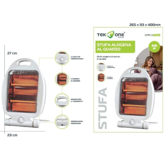 Stufa alogena al quarzo TekOne 0000NSB-80 800W, 2 lampade al quarzo, 2 livelli di potenza, Dimensioni: 23x27cm