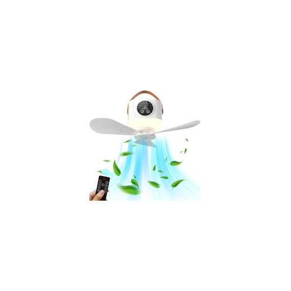 Ventilatore portatile da soffitto con telecomando, bianco, ricarica usb type-c, batteria 3600mAh, 3 pale e 4 velocità