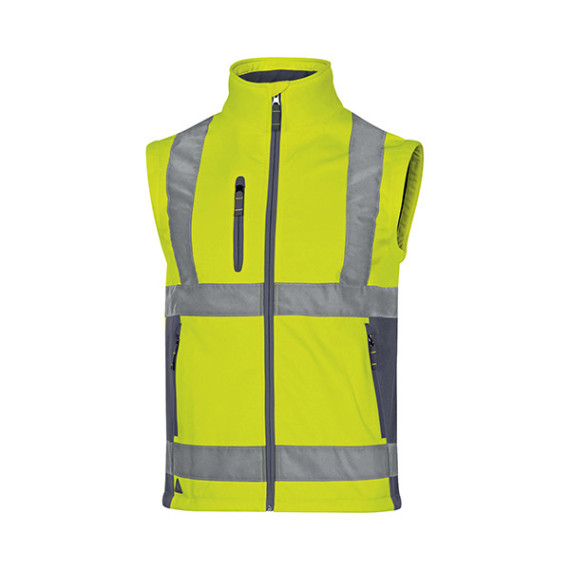 Giacca con chiusura zip antifreddo, maniche staccabili e 5 tasche. Fondo maniche con finitura sbieco e parte bassa regolabile tramite elastico. Tessuto Softshell traspirante, idrorepellente, malleabile, leggero, morbido, 100% poliestere 3 strati laminati. Strisce retro-riflettenti cucite. Alta visibilità: Classe 3 - Colore argento - Bande a bretella e parallele. Categoria DPI: 2. Certificazione CE. Conformità alle norme EN ISO 13688:2013 e EN ISO 20471:2013 /A1:2016.