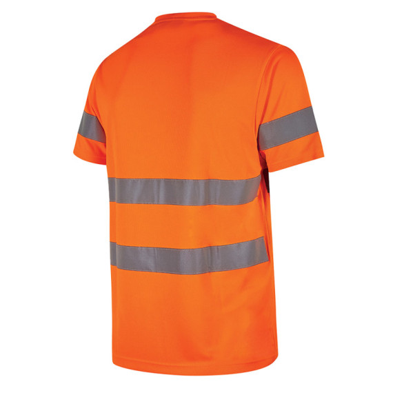 Maglietta a maniche corte con strisce riflettenti applicate su busto e maniche, realizzata in tessuto con trama a “nido d’ape” che migliora la traspirabilità. Dotata di una fettuccia parasudore, offre maggiore comfort e protezione sulla pelle. Su ordinazione da S a 5XL.CE EN ISO 13688, EN ISO 20471.