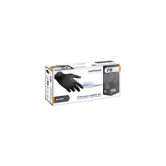 Guanti in nitrile R78 - senza polvere - taglia S - nero - Reflexx - conf. 100 pezzi