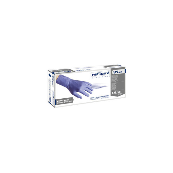 Guanti in nitrile ultra resist R99 - manichetta lunga - tg XXL - indaco - Reflexx - conf. 50 pezzi