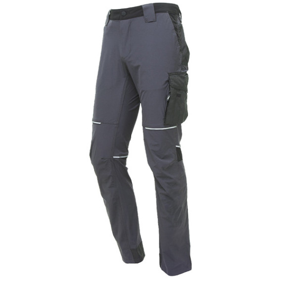 Pantalone in tessuto U-4 (U-Power 4 way stretch) molto comodo, resistente, morbido sulla pelle, idrorepellente, traspirante e asciuga rapidamente. Dotato di due ampie tasche anteriori, elastico in vita con un sistema innovativo di regolazione a scomparsa. Carrè posteriore accentuato per una maggior protezione della parte lombare e nastro reflex su passante tubolare posteriore. Tasca laterale porta utensili, multifunzionale con porta badge a scomparsa, due tasche posteriori di cui una con pattina e una con chiusura di sicurezza a velcro, battitacco in resistente polyoxford 600D. Due tasche, chiuse con zip in corrispondenza del tascone laterale e della tasca frontale destra.Triple cuciture, bottone antigraffio, zip YKK, Slim Fit. Composizione: 86% NYLON • 14% SPANDEX • 140 gr/m2MISURE/TAGLIE DISPONIBILI: XS-5XL