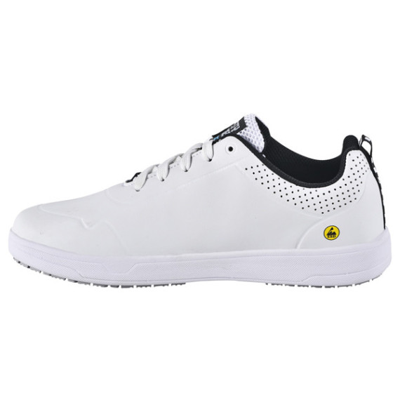 Sneaker da lavoro leggere e dalla vestibilità comoda con suola antiscivolo (metal free) e plantare estraibile. Tomaia resistente all 'acqua e fodera in mesh 3D traspirante, ideale per chi trascorre molte ore in piedi grazie alla tecnologie di assorbimento di energia nel tallone e all’ampia calzata. Indicata per settore della ristorazione, pulizie e medicale. Numeri disponibili da 35 a 47.Certif icazioni: CE, ESD, ASTM F2892:2018, EN ISO 20347:2012.