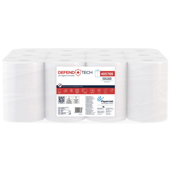 ASCIUGAMANO AD ESTRAZIONE INTERNA PURA CELLULOSA MICROGOFFRATO 2 VELI DA 17GR. ALTEZZA ROTOLO 21,5CM - DIAMETRO ROTOLO 14,5CM - LUNGHEZZA CARTA 69MT (189 STRAPPI DA 21,5X36,5CM). Dati tecnici: Materia prima: Cellulosa Pura Idoneità al contatto alimentare: Sì Colore: Bianco Goffratura: Micro Veli: 2 Grammatura (g/m2): 17 Grado di bianco: 85 Estrazione interna: Sì Lunghezza Rotolo : 69mt Diametro: 14,5cm Diametro anima: 5,1cm Numero strappi: 189 Altezza strappo: 21,5cm Lunghezza strappo: 36,5cm Confezione da 12 rotoli