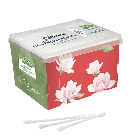 Bastoncini in cotone microbiologicamente controllati. Biodegradabili e compostabili. Ideali per l'igiene quotidiana di tutta la famiglia. Composizione teste: cotone. Composizione bastoncino cotonato: carta. Lunghezza: 77mm. Colore: bianco.