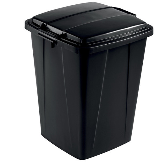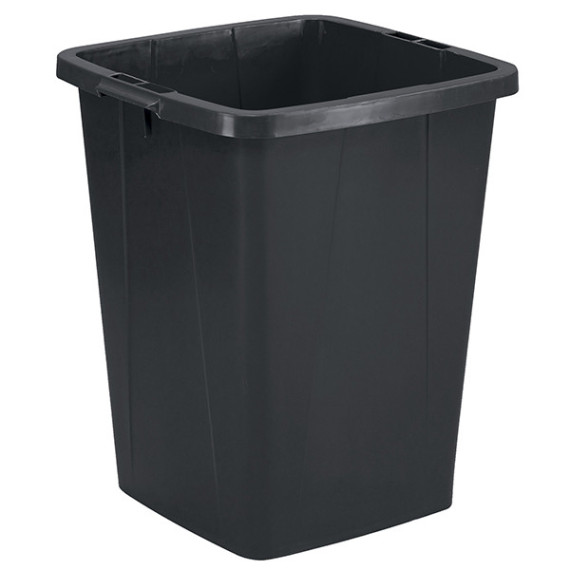 Bidone quadrato, in plastica riciclata, per la raccolta differenziata di rifiuti e materiale riciclabile. Può essere utilizzato anche per lo stoccaggio e il trasporto di materie prime in fabbriche e attività commerciali. Capacità: 90 litri. Dotato di robuste maniglie per un facile trasporto. Prese sul fondo che ne facilitano lo svuotamento. Dotato di fessure per fissare i sacchi dell’immondizia. Altezza 610 mm. Coperchio acquistabile separatamente cod. 104941