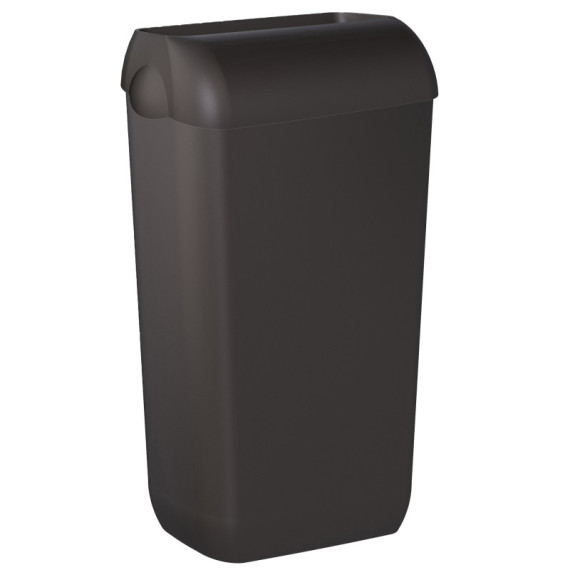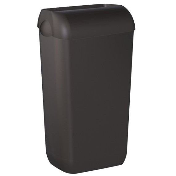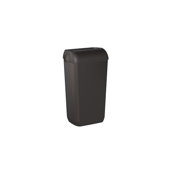 Cestino gettacarte completo di coperchio Hidden (nascondi sacco che rendono discreta la presenza del sacchetto interno). Capacità 23 L.Utilizzabile a pavimento o installabile a parete (in dotazione piastra di fissaggio). Dimensioni: H54,5xP22,5xL33,5cm.