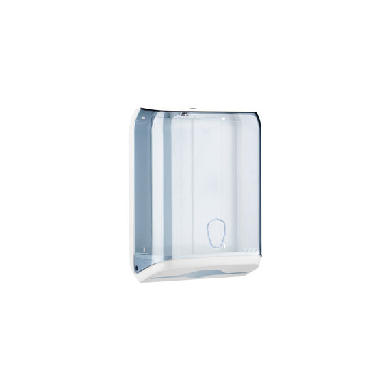 Dispenser asciugamani piegati C/V/Z - 28x13,7x37,5 cm - plastica - bianco/azzurro trasparente - Mar Plast