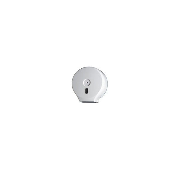 Dispenser carta igienica in ABS, di colore bianco. Per rotoli Minijumbo. Dimensione: 28,2x12x29,4cm. Capacità 25,5cm. Pulizia periodica da effettuare con un panno morbido e non abrasivo, imbevuto d’acqua. Detergenti che contengono solventi possono danneggiare il materiale.