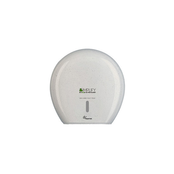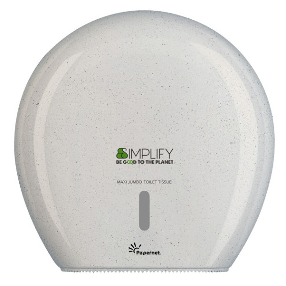 Dispenser Simplify per carta igienica Maxi Jumbo (cod. 421333) realizzato per il 75% da materiale plastico post-consumo e materiali in eccesso proveniente dalla lavorazione del legno, al fine di garantire una riduzione degli sprechi nel rispetto dell'ambiente. Dispenser interamente riciclabili. Design pulito ed elegante, realizzato con materiali antiurto per maggiore praticità.Altezza dispenser (cm): 34.5Larghezza dispenser (cm): 14.8Lunghezza dispenser (cm): 34.5Capacità: Max. Ø cm 29 x 10 hColore: White WoodChiusura a chiave