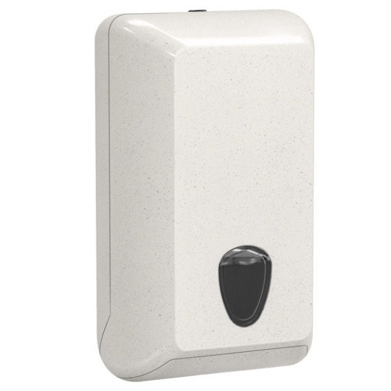 Dispenser per carta igienica interfogliata.Capacità 550 fogli se piegati a VCapacità 450 fogli se piegati a Z realizzato in plastica e legno riciclati. Modalità di fissaggio con viti e tasselli/biadesivo.Chiusura: A chiave. Altezza di montaggio: 60-70 cm. Dimensioni: 300 x 132 x 170mm. Made in Italy.