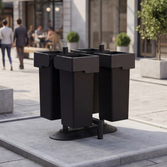 Portarifiuti MODULA - da terra - coperto - con contenitore - quadruplo - 90 x 90 x 107,5 cm - 73+73+73+73 L - antracite