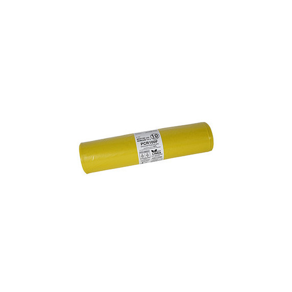 Sacco rifiuti - PCR - 90 x 120 cm - 120 L - 100 gr - giallo -Bio Extrusion - conf. 10 pezzi