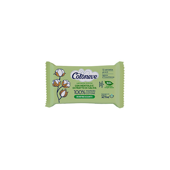 Salvietta intima rinfrescante - cotone biodegradabile - Cotoneve - conf. 12 pezzi