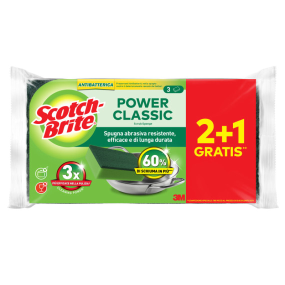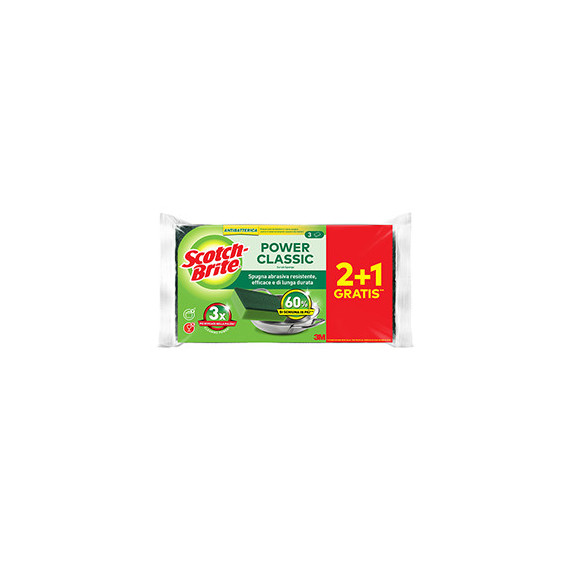 Spugna abrasiva Power Classic - antibatterica - 14,2x2,4x11,5 cm - giallo/verde - Scotch-Brite - conf. 3 pezzi