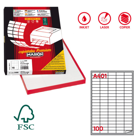 Etichette adesive A/401 - in carta - permanenti - 37 x 14 mm - 100 et/fg - 100 fogli - bianco - angoli tondi - Markin