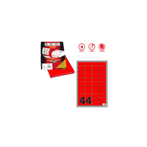 Etichette adesive A/406 - in carta - permanenti - 47,5 x 25,5 mm - 44 et/fg - 100 fogli - rosso fluo - angoli tondi - Ma