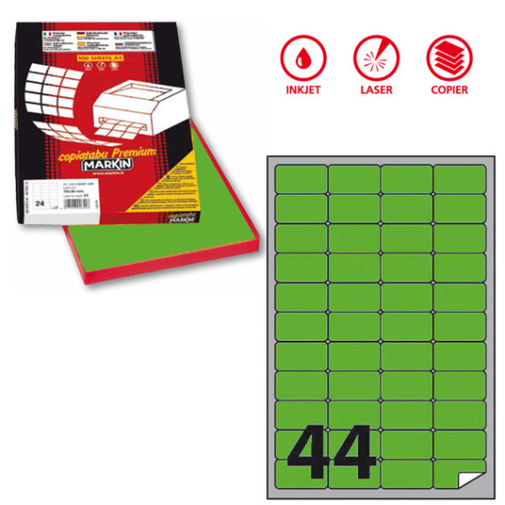 Etichette adesive A/406 - in carta - permanenti - 47,5 x 25,5 mm - 44 et/fg - 100 fogli - verde fluo - angoli tondi - Ma