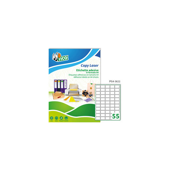 Etichette adesive PG4 - in carta - laser - permanenti - 36 x 22 mm - 55 et/fg - 100 fogli - bianco lucido - Tico
