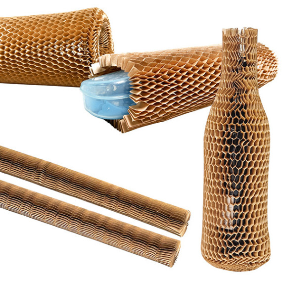 Manicotto in carta alveolare. Eccellente imballaggio pratico ed efficiente. 100% biodegradabile, la sua struttura esagonale offre una protezione antiurto elegante e raffinata, riutilizzabile più volte. Grammatura 70gr.