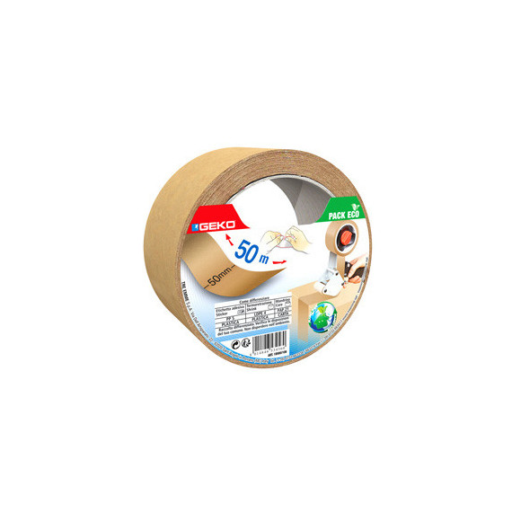 Nastro adesivo da imballo in carta riciclabile ed ecologico. Massa adesiva Hot Melt. Dimesioni 50mmx50mt. Si lacera ed evidenzia eventuali manomissioni del pacco. Colore Avana, ogni rotolo è termoretratto singolarmente e provvisto di etichetta con i codici smaltimento.