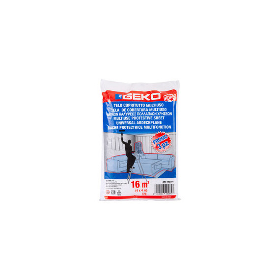 Telo coprituttto - 4 x 4 m - 16 mq - 230/240gr - HDPE - trasparente - Geko - conf. 3 pezzi