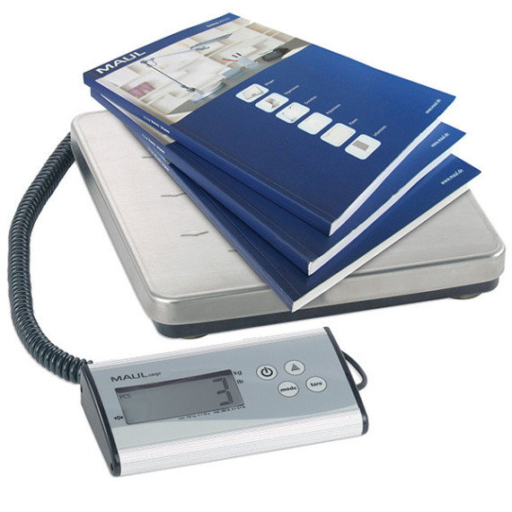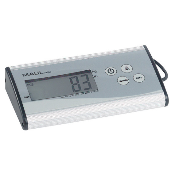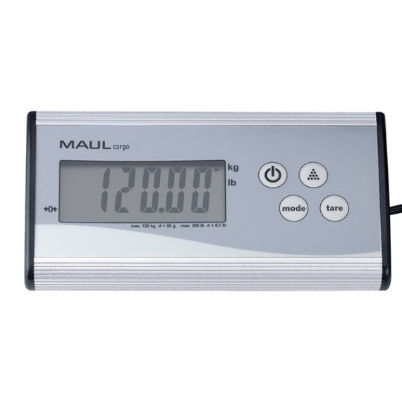 Bilancia Maulcargo pesacolli, fino a 120 kg. Piatto di pesata in acciaio inox con manopole antiscivolo. Funzionamento a batteria a risparmio energetico con batteria da 9V (inclusa). Funzione di contaggio intelligente che permette di contare il numero di pezzi dello stesso peso. Pannello di controllo separato.