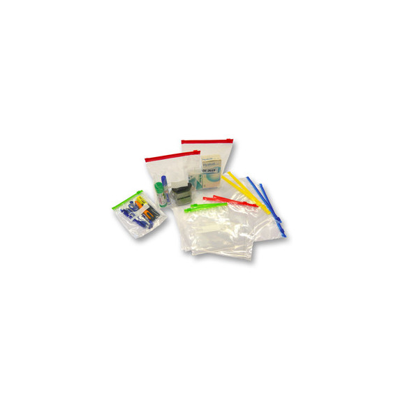 Buste slider in polietilene con zip, cursore di sicurezza, finestra scrivibile per annotare informazioni o date e soffietto sul fondo. Ideali per laboratori, componentistica, cosmesi, sia per contenere documenti che oggetti