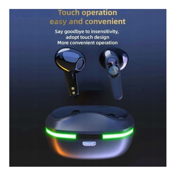 Auricolari Bluetooth Pro 60 black Earbuds da gioco con led Earphone Bluetooth V5.0 WI-FI cuffie gaming TWS a bassa latenza CVC8.0
