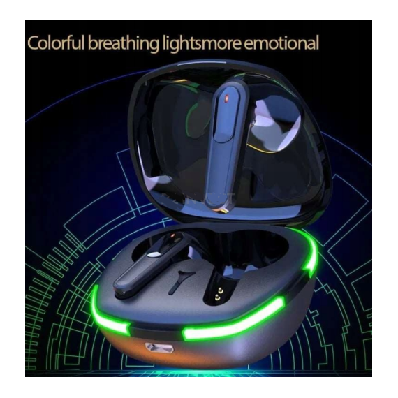 Auricolari Bluetooth Pro 60 black da gioco con led Earphone Bluetooth V5.0 WI-FI cuffie gaming TWS a bassa latenza CVC8.0