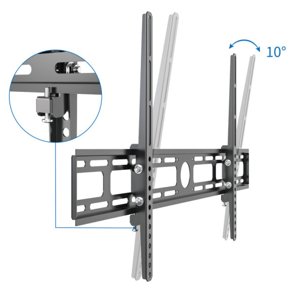 Supporto TV 42''-80'' a muro inclinabile nero con carico massimo 60kg. Attacchi VESA fino a 800x400, inclinazione -10°/+0°. Distanza dal muro 34mm - Acciaio laminato a freddo - Livella integrata per posizionamento semplice - Dimensione TV: 42-80 - Attacchi VESA: fino a 800 x 400 - Carico massimo: 60 kg - Distanza dal muro: 34 mm - Inclinazione: -10°/+0° - kit di fissaggio incluso - Finitura nera - Dimensioni LxAxP: 840 x 420 x 34 mm - Peso netto: 1,74 Kg - Peso lordo: 2 Kg
